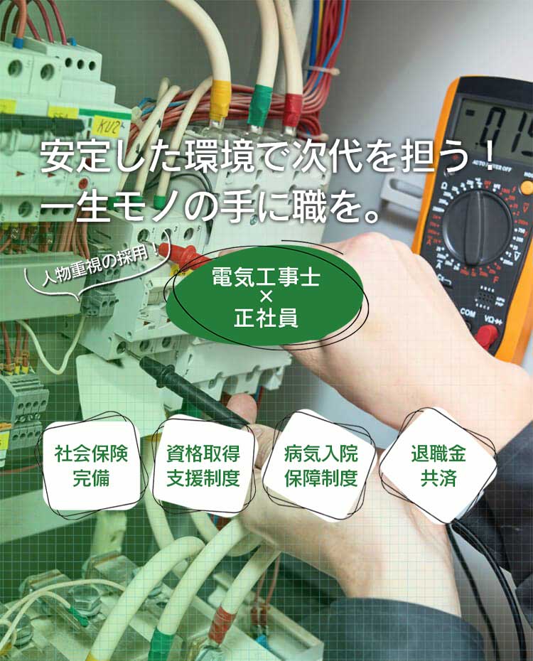 2000年設立の株式会社つくば電送は、茨城県内のオフィスをはじめ、工場・倉庫などの電気工事等の担当しています。同社で活躍するスタッフの技術力・対応力を強みとして、案件・業績ともに右肩上がりの拡大を続けています。